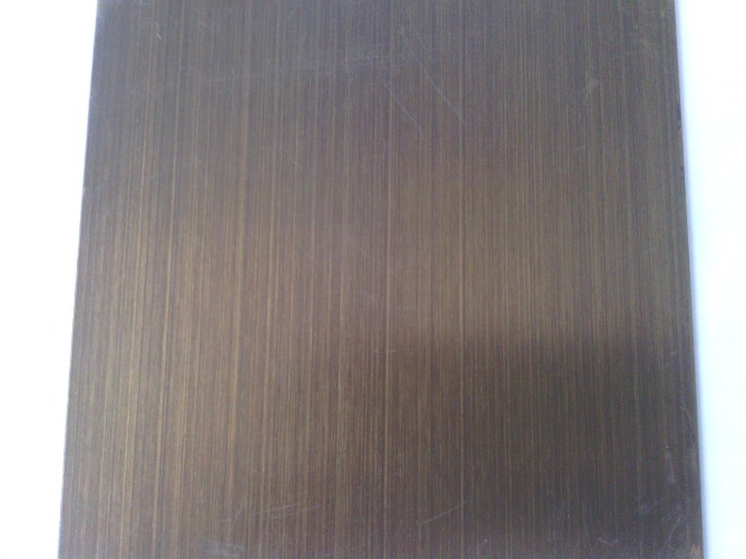不銹鋼仿古銅板:不銹鋼仿古銅板 ,有紅銅,青銅,仿紅古銅,仿青古銅,亮光紅古銅,亮光青古銅,啞光紅古銅,壓光青古銅等,通過(guò)化學(xué)(或電化學(xué))處理,在不銹鋼表面形成一層高抗蝕性氧化膜,給不銹鋼著(zhù)上古銅色彩,不僅使其保持了不銹鋼原有的各種優(yōu)越性,而且使其耐蝕性能、耐老化性能、耐紫外線(xiàn)照射性能和外觀(guān)裝飾效果優(yōu)于普通不銹鋼。不銹鋼仿古銅板具有耐熱性:在沸水中浸漬28天,在200℃以下暴露五個(gè)星期,在250℃以下長(cháng)期暴露,加熱到400℃,膜層色澤均無(wú)明顯變化;耐磨性和抗刻劃性能:能隨在500g/cm2的壓強下,橡皮摩擦2000次以上不變色,用300g的鋼針刻劃不劃穿;加工性能:能承受常規的模壓加工、深拉延、彎曲加工以及加工硬化,進(jìn)行180℃彎曲試驗和8mm的杯突試驗后,氧化膜均完好!