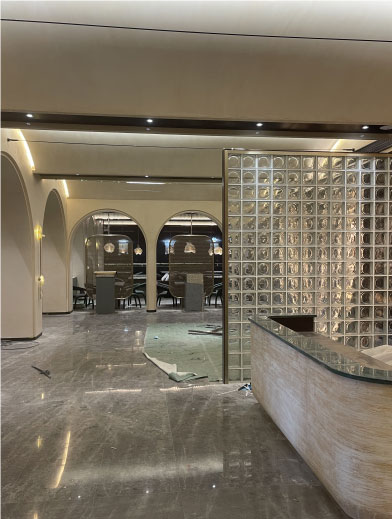 就餐區選擇了玻璃屏風(fēng),使就餐區看起來(lái)更加寬敞明亮